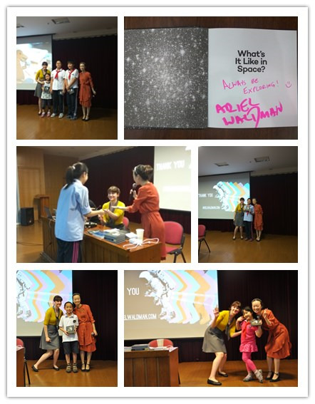 ?在签名赠书环节,我们的小小创客们踊跃提问,积极发言,与Ariel进行了互动讨论。“如果带一只母鸡进太空会怎么样?母鸡还会下蛋吗?”“宇航员在太空最喜欢的食物是什么?”各种奇思妙想的问题,不仅展现了自身良好的科学素养和不断进取的好奇心,同时也体现了静安青少年的风采。