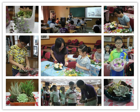 在花艺制作课上,同学们不但了解到植物的根、茎、叶、花、果的作用,而且也懂得了它们在花艺作品中的应用;掌握了如何根据节庆场合选择花材,以及花艺的制作步骤和后期养护要点。