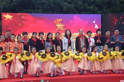 伴随着《中国少年先锋队队歌》旋律的响起,活动拉开序幕。薪火相传,区红领巾理事、奉城二中大队长褚俊杰和傅浩爷爷带领少先队员出少先队队旗,全体与会人员高唱队歌。活动分三个篇章展开。