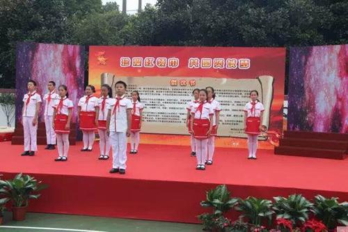 翁晔向新上任的大队辅导员颁发了聘书,辅导员老师用自己的宣言表达了要肩负使命与责任的决心。而后举行了奉城二中学校少工委成立仪式,周英为奉城二中少工委委员颁发聘书。接着举行六年级学生代表换巾仪式,六年级少先队员代表换上鲜艳的大号红领巾,在傅浩爷爷的领誓下重温入队誓词,奉城二中少工委主任金爱群寄语少先队员要传承长征精神,珍爱领巾,铭记责任,学好本领,将来做祖国合格的接班人。