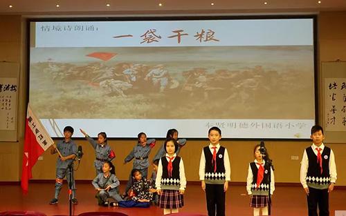 各支参赛队经过师生的精心编排,充分运用音乐、舞蹈、喜剧、情景表演、多媒体等形式,呈现了精彩的诗歌朗诵表演。舞台上,孩子们用饱满的情感热烈讴歌红军将士,生动再现长征途中浴血奋战、克服艰险、坚定信仰、不畏牺牲的红军形象。