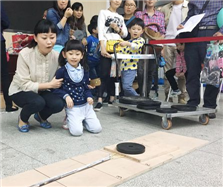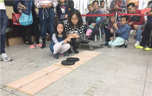 比赛现场,每个家庭都全力以赴,头脑风暴。在他们的创意设计后,我们一起见证了一张A4纸的百变魔力、平日里不起眼的废旧物品在孩子和家长的巧手下熠熠生辉、脆弱的报纸竟然能拖动几十公斤的重物、各式各样的打靶装置和爱心小发明都包含了每个家庭创意和智慧……这些亲子比赛项目大大地激发了孩子和家长的参与热情,挑战着每个家庭的智慧,积极发挥着他们"所向披靡"的动手能力和创造性思维,现场欢呼声雀跃不已。