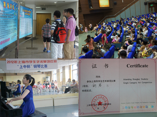 全市各个区县推荐的五百多名小选手纷至沓来,展开了幼儿组、小学A组、小学B组、初中组、高中组五个组别的角逐,小选手们上台弹奏自己最拿手的曲目并获得了珍贵的参赛证书,胜出的小选手将逐鹿2012上海市学生艺术单项比赛钢琴决赛,问鼎这一市级钢琴赛事的最高荣誉。