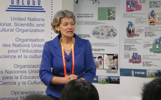 联合国教科文组织总干事和上海市中学生就气候变化问题进行互动交流纪实