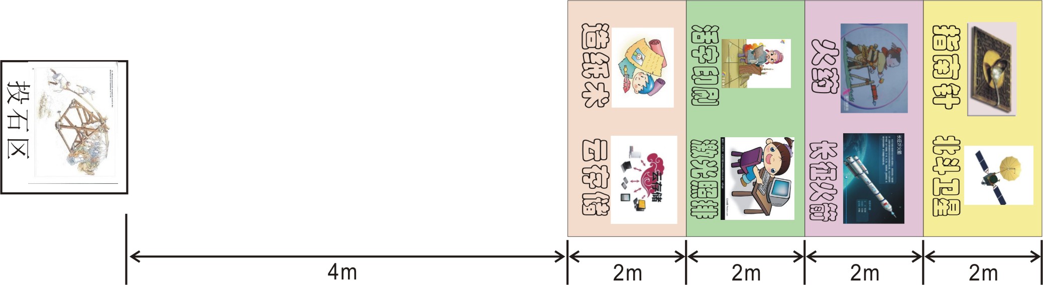 投石机可以采用任何形式,如杠杆式、弓弩式等,材料不限。投石机的最大尺寸不能超出1米宽×1.5米长×1.5米高。投石机形成的投射力只能来自橡筋(橡筋规格不限),投石机投射距离必须在4米至8米之间。