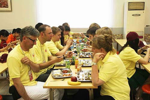 ??? 主办方为每个参加夏令营的团队配备了2名来自上海中学的学生志愿者,此外还有15名工作人员在住宿、餐饮、出行等方面确保一切安全、顺利、有序。