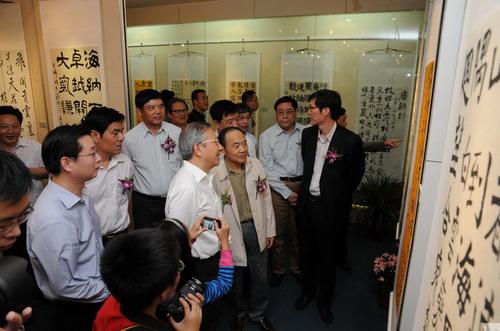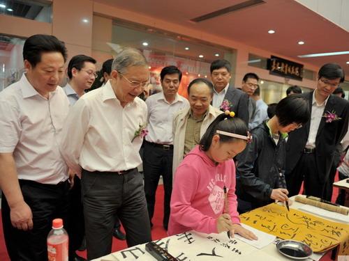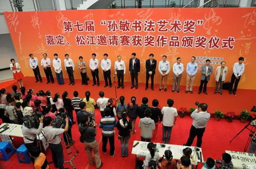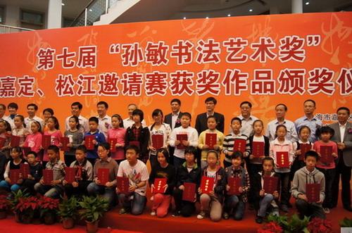 10月14日下午,第七届孙敏书法艺术奖嘉定、松江邀请赛获奖作品展暨颁奖仪式在区青少年活动中心隆重举行。上海市人大常委会主任刘云耕、中共嘉定区委书记金建忠、中共嘉定区委副书记、嘉定区区长马春雷、嘉定区人大常委会主任吴辰等领导及本届比赛获奖师生和基层学校师生代表共计200多人参加活动。