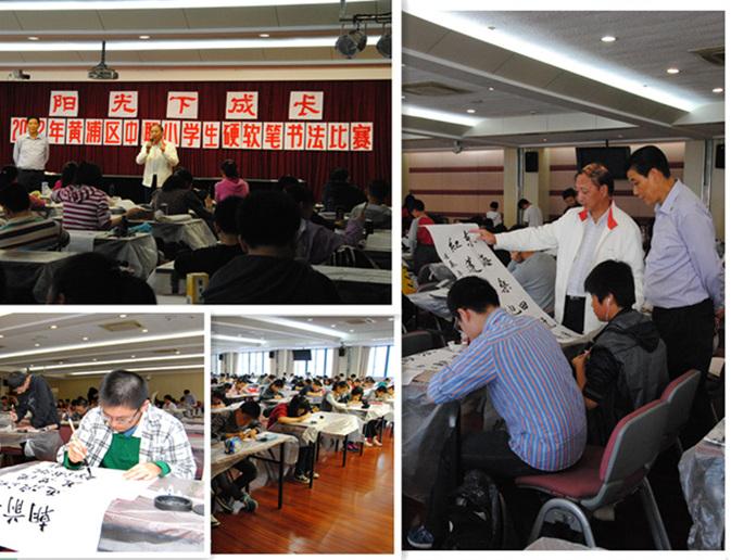 ???????? 10月26日,由黄浦区教育局主办、区青少年艺术活动中心承办的“阳光下成长”——2012年黄浦区中(职)小学生软笔、硬笔书法比赛,在黄浦区青少年艺术活动中心举行。黄浦区书法家协会主席张伟舫,黄浦区书法家协会副主席吕颂献,黄浦区青少年艺术活动中心主任侯橹等领导来到比赛现场,关心学生书法学习情况。