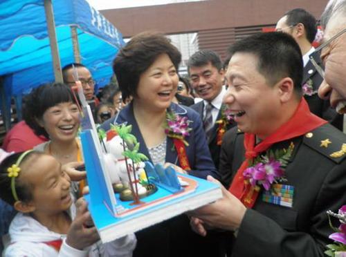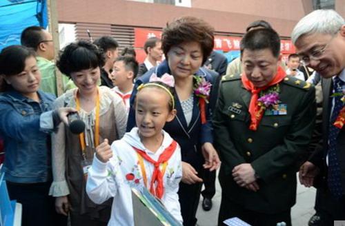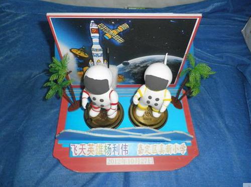 本次活动由上海市科技艺术教育中心和上海市宇航学会共同主办,真新小学代表嘉定区参加了此次活动?;疃谇际楣菽诼≈鼐傩校泄厝撕教彀旃腋敝魅?,飞天英雄杨利伟少将来到我区展位前,仔细听取了学生们的作品创意介绍,饶有兴致的观看了学生们利用废弃材料制作的空间站、未来月球基地创意模型。当孩子们向飞天英雄杨利伟赠送他们自己用超轻粘土捏制的太空宇航员模型时,全场轰动。杨利伟非常高兴地接过礼物,并鼓励学生们努力学习,报效国家。