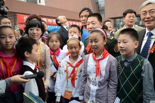 10月27日下午的“圆梦九天——中国载人航天工程的壮丽航程”展览及青少年航天科技作品展示活动现场人山人海,飞天英雄杨利伟欣然接收了嘉定区真新小学学生自己亲手创作的太空宇航员模型。与英雄一起合影留念、和英雄近距离对话,让参加活动的每一位嘉定学子欢欣鼓舞、激动不已。