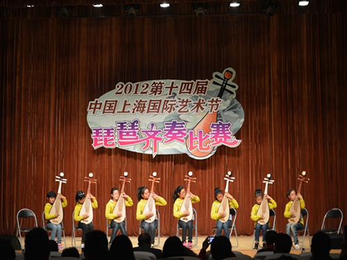 ??? 金秋十月,上海又迎来了每年一度的艺术盛宴——上海国际艺术节。2012第14届上海国际艺术节,首次举办了琵琶齐奏比赛,这对奉贤区青少年活动中心琵琶班的学员们来说可是一个难得的锻炼机会!经过几个月的艰苦训练,最终,汪圣悦等8名学员,登上了这个舞台!虽然她们学习琵琶才3年时间,但还是成功演奏了《阳春白雪》、《欢乐的日子》两首乐曲,获得优秀奖,指导老师李莉也获得园丁奖。