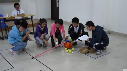 比赛仍然由语言即兴挑战、动手即兴挑战、混合即兴挑战三项内容组成,而赛题内容则给了队员们更多的空间施展想象力与创造才能。如:语言挑战的题目“Ta 一定是在”要求队员们结合手中6张不同颜色的卡片即兴造句;动手即兴中“巧放小球”的挑战则要求队员们通过团队协作,用所提供的材料,通过各种方法把不同的球类放置到得分区域。作为头脑OM竞赛项目中对队员们的团队协作与现场应变能力要求最高的一项赛题,即兴题挑战赛为各校的头脑OM参赛队搭建了充分训练队员应变与协作能力的平台。比赛结果于当天揭晓,民办打一、上理初级、交大附中分获得了小学组、初中组、高中组全能挑战第一名。