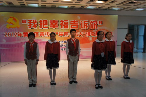 金秋送爽,又添喜庆,我们即将迎来党的十八大,神州一片欢腾。11月2日下午,黄浦区少年儿童“共迎十八大”诗歌朗诵比赛拉开了序幕。全区师生一起抒发爱国情,歌唱亲爱的祖国。饱含深情的朗诵声,和着壮美的配乐在黄浦区青少年科技活动中心底楼大厅绕梁。