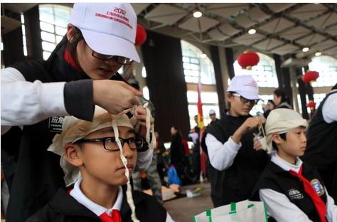 ?????? 11月10日上午9时许,来自本市17个区县中小学师生乘坐的大巴驶入东方绿舟地球村时,忽然一位佩带红袖章的工作人员上前告知带队老师:车尾冒烟,发现火情,请立即疏散车内人员!顿时,车上的学生在老师的引导下,紧张、有序、快速地撤离有“火情”的车辆。近于逼真的车辆逃生技能展示,拉开了2012年上海市中小学师生识险、避险、自救、互救技能展示的帷幕。
