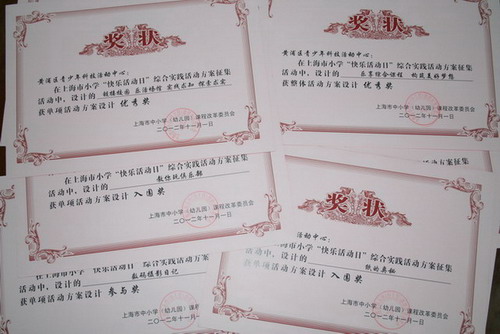 为了加强学生体验和实践,丰富学生的学习经历,促进学生健康快乐成长,上海市于2011学年伊始在全市小学阶段启动了“快乐活动日”活动;并于2012年初,向全市征集“快乐活动日”综合实践活动方案。在上海市“‘快乐活动日’综合实践活动方案”征集活动中,黄浦区青少年科技活动中心“乐享综合课程,构筑美好梦想”活动方案获得整体活动方案设计优秀奖,“链接校园乐活场馆 实践求知 探索求实”获得单项活动方案设计优秀奖,“教你玩俱乐部”和“纸的奥秘”两项活动方案获得单项活动方案设计入围奖,同时,“品悟经典诗文 传承中华文明”、“数码摄影日记”、“同在一片蓝天下,同献一份爱心”等5项活动方案获得了单项活动方案设计参与奖,这是对我们科技活动中心努力开展“快乐活动日”活动的一种肯定,更是一种鼓励。