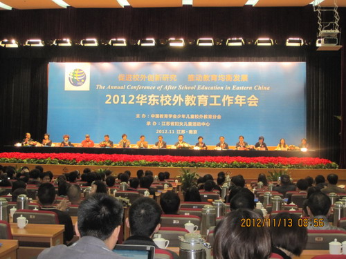 2012年11月12日至15日,华东校外教育工作年会在南京召开。来自华东六省一市的500余名校外教育专家、学者围绕未成年人校外教育的创新与均衡发展展开研讨。