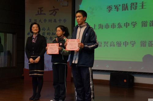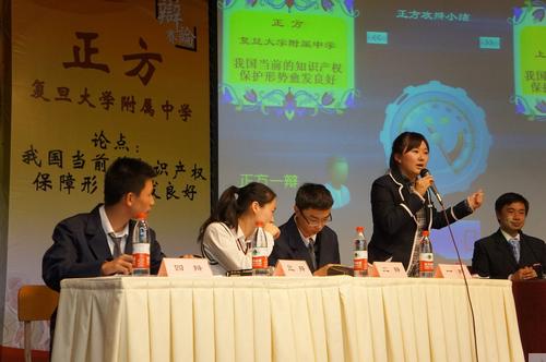 围绕知识产权保护的主题,正反两方以“我国当前的知识产权保障形势愈发良好/严峻”为辩题,展开了激烈而又有序的辩论。正反方的辩手们通过立论、质询、小结、自由辩论、结辩等环节发表了各自清晰而富有逻辑的观点,展现了当代中学生对知识产权保护这一论题的辩证思维能力及口头表达能力。比赛还邀请了上海大学胡申生教授、华师大辩论队教练罗宏琨、及复旦大学研究生辩手许耀等专家作为现场评委,胡教授作为评审会主席代表评委会就选手们在决赛场上的表现进行了精彩点评。最终,上海市建平中学以4比3的票数赢得了整场比赛的冠军,而复旦大学附属中学的三辩黄欣悦同学荣获最佳辩手的称号。现场由市知识产权局副局长洪涌清等市区相关领导分别为获得冠、亚、季军队、最佳辩手、优秀辩手等奖项的选手们进行了颁奖。在洪局长的精彩讲话中,对本次大赛圆满举行表示了祝贺,那句“让他看到了未来中国保护知识产权的希望所在”,正是对辩手们的场上风采给予了高度评价。
