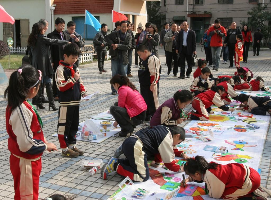 校门走廊里,20多名学生在长达10米的画卷上泼墨作画,一棵棵象征着环保的生命之树跃然画布上,向人们宣传低碳环保的理念;操场上、教室里,风筝和航模表演、机械奥运系列、结构搭建、Kaleidocycle制作、科学绘画、纸风车制作、环保制作、电子模型、OM活动展示、无土栽培等12个科技活动项目进行现场进行制作、活动展示;师生们还进行了魔方,魔尺,溜溜球表演、遥控直升机穿五环等节目展演。为期一个多月的宝山区校园科技节正式拉开帷幕。