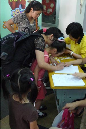 家长带着孩子早早赶到比赛现场,进行现场参赛登记