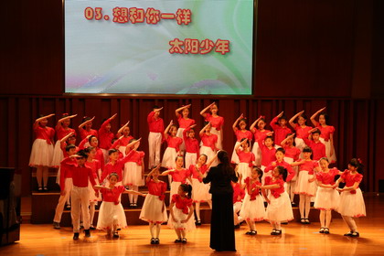 伴随着美妙的旋律,比赛的帷幕缓缓拉开?!段骱合?、《想和你一样》、《卖花姑娘》、《数蛤蟆》、《奉献》、《Flying Free》、《水乡船歌》、《卖火柴的小女孩》、《当我们小的时候》、《宇宙的种子》、《猜调》、《菊花台》……一首首动听的歌曲在赛场飘荡。跟随着这些不同风格、不同体裁、不同民族的歌曲,合唱团员们带领着观众时而沉浸在幽静的西子湖畔,时而憧憬自由美好的明天,时而与童话中的主人公对话,时而又感悟着默默付出分享的快乐……同济一附中、上理工附小、五角场小学、上外双语、内二小学、齐一小学、控江中学、育鹰学校、市东中学的倾情演唱赢得了专家评委们及现场观摩的师生们的阵阵掌声。