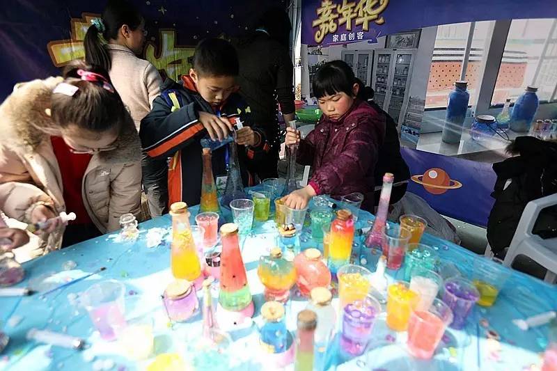求真中学的高盛同学带来的彩虹瓶受到大家火热追捧,一批又一批的孩子前来体验,制作一个表达自己心愿的彩虹瓶。