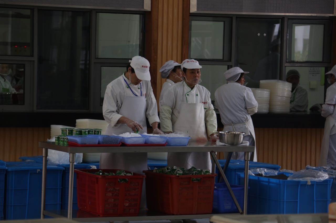 食堂中午是人流量最多的时候,师傅们忙前忙后确保每一位参赛人员饮食足量供应而且吃得健康,吃得放心,吃得营养。