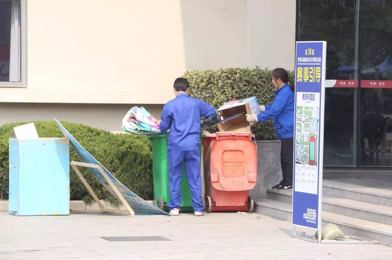 尽心尽责的环卫工人们不辞辛苦地为赛后的场地清扫着,为参赛人员提供干净整洁的比赛场地。