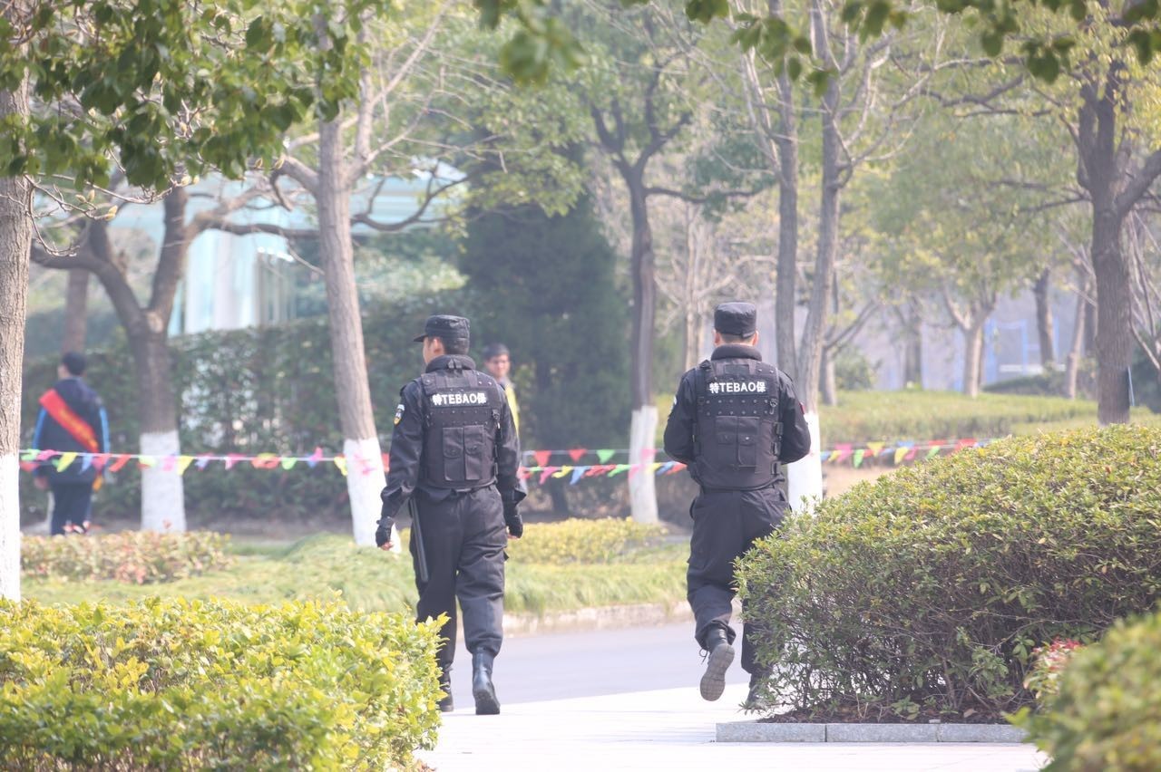 公安人员忙里忙外,校外参赛车辆的引导、校内人员安全的保护,他们为这次比赛保驾护航。