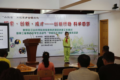 4月14日下午,上海市青少年科技教育资深专家、上海电视台、上海科技教育出版社、奉贤电视台、《奉贤报》社、奉贤教育学院和奉贤区青少年活动中心以及全区各小学的科技教育分管领导和科技总辅导员来到奉贤区江山小学校园参加以“小创客再现家乡古桥文化”为主题的“奉贤区科技教育特色项目创建工作研讨暨第三届奉贤区学生活动节江山小学‘自主项目’