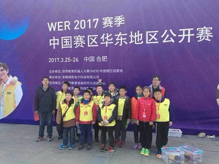 3月25日-26日,世界教育机器人大赛(WER)2017赛季中国赛区华东地区公开赛(以下简称:WER华东赛)在安徽省合肥市蜀山区奥体中心举行。5000多名小选手汇聚一堂,角逐WER中国能力挑战赛、WER中国工程创新赛、WER中国积木普及赛等六大赛项的冠军殊荣。我区在上海外国语大学松江外国语学校徐卫新、管俊利和新桥中学陈刚老师带领下,共派出18支代表队,40名选手参赛。
