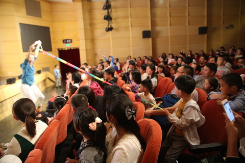 直直和扭扭是截然不同的两个人,直直的所有东西都必须是直的,扭扭的所有东西必须是弯的,“纷争”不断的他们最终会有怎样的结局呢?今天长宁区少年宫的艺趣大课堂,就为前来观剧的120组亲子家庭,以肢体物件儿童剧的表演形式演绎了这样一个故事——《直直&扭扭》。