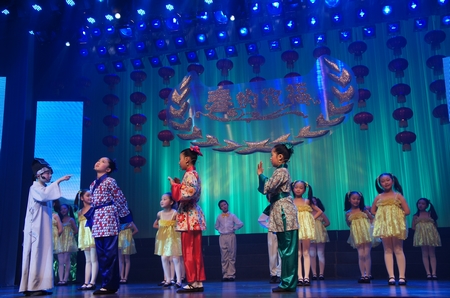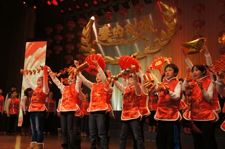 以“春的祝福”为主题,在市一中学爵士乐迎宾曲的欢快奏鸣声中,2013静安区学生迎新文艺汇演拉开了帷幕:育才中学《龙腾虎跃》激越的鼓声尚未褪却,紧接着一师附小的孩子们俏皮地跳起了《金蛇闹春》,预示着龙蛇交替、万象更新;活动中心的古诗词吟唱《读唐诗》、民乐合奏《美丽的西双版纳》,拉开了中华民族悠久文化序曲;延中幼儿园舞蹈《快乐的小厨师》,揉合了“江南style”流行元素,让人忍俊不禁;上戏附中表演唱《让世界充满爱》运用哑语肢体语言,传达弱势人群心声;逸夫职校创新百老汇经典,舞出自己心目中的《猫》;活动中心歌表演《过年了》,用上海童谣与台下大、小观众互动;大型主题歌舞表演《春的祝福》把整场演出推向了高潮……