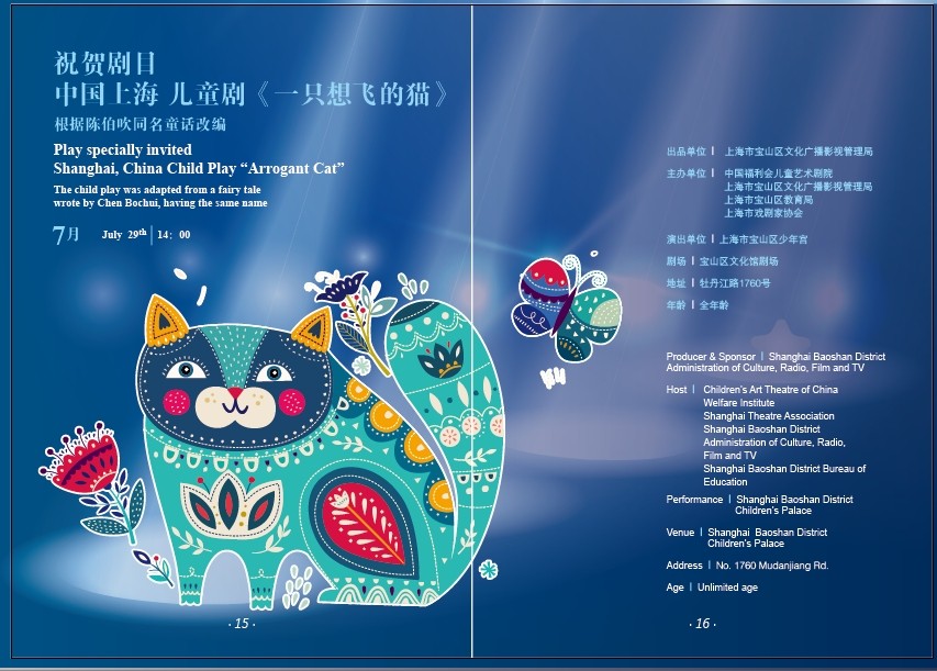 儿童剧《一只想飞的猫》改编自中国著名儿童文学作家陈伯吹老先生的同名童话,讲述了一只自以为是、盲目逞强的猫,他吹嘘自己是赛跑健将、歌唱家和打鱼专家,甚至幻想能够飞上天去。可是面对劳动与学习,他却不愿意了。该剧通过一系列生动有趣的剧情,活灵活现地演绎出这只“想飞的猫”从骄傲虚荣、好逸恶劳,在大家的帮助下逐渐认识到自己的错误,成长为一只充满爱心、脚踏实地的猫的故事。本剧由上海市宝山区文化广播管理局出品,由中福会儿童艺术剧院国家一级编剧杜邨编剧、中福会上海儿童艺术剧院殷超斌担任导演,宝山少年宫艺术语言教师宋护彬老师担任副导演及舞台监督。