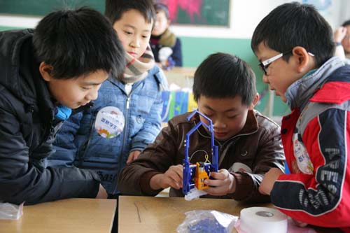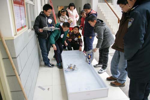 让学生学会团队合作也是大赛的一个目标,因此许多活动都是二、三人的组合,需要他们的沟通、协作、配合和相互尊重才能很好的完成任务。“校园新品设计”项目就要求三人合作,对校园进行观察和调查,寻找校园中的不如意之处,进而通过集体的头脑风暴,设想解决的方法,实施技术发明。