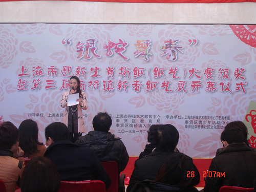 上海市科技艺术教育中心副主任殷以杰、奉贤区教育局副局长唐瑛、奉贤区南桥镇人民政府副镇长张英、上海市民间文艺家协会副主席兼秘书长忻雅华、上海市工艺美术学会副会长兼秘书长周南等领导、专家以及广大纸艺爱好者参加了本次盛会。