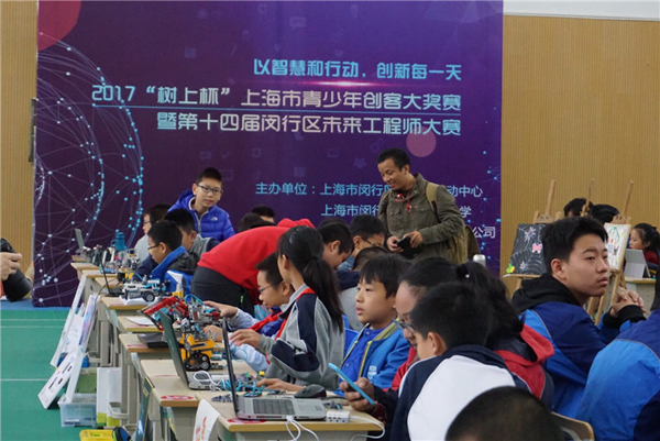 “以智慧和行动,创新每一天!”来自闵行区乃至上海市的500余名师生欢聚一起,是一场充满智慧的创意作品比拼,更是一场欢乐的小创客们的“聚会”。
