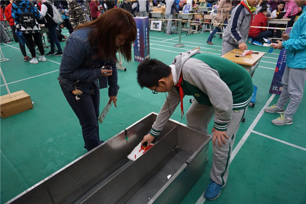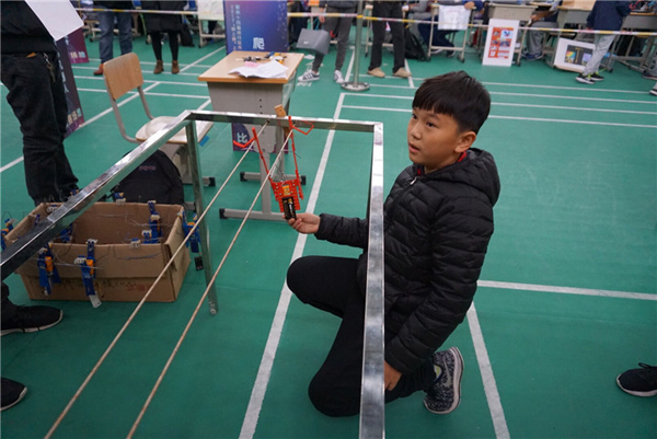 大赛的活动内容分为经典系列和智能创意系列两大板块,既体现了STEAM精神又相当的接地气!经典系列项目有承重结构、仿生机器人竞技,推车机器人、横杆投弹机器人、游泳机器人、爬阶梯机器人、爬直梯机器人、爬电缆机器人、爬旗杆机器人。各种机器人不仅展示了灵动的制作和操作技能,也反映着活跃的创新思维。而娱乐活动是孩子们最爱参与的的东西,游戏机、小车、小熊、手枪等等,随着科技的发展,我们的玩具和游戏方式是不是也要有变化,变得更智能更有交互性?正是基于此,本届大赛又催生出包含智能玩具和趣味交互式游戏设计两大类的智能创意系列竞赛项目!无论经典项目还是智能创意,同学们和参赛老师完全抛弃了平日的紧张和顾虑,开心的全身心投入到了活动中,成为一名创客,享受着智能、科技、创新的一天。