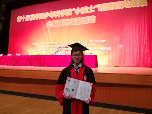 2018年1月1日上午九点三十分,来自全国各地的中小学科创爱好者集聚北京中国传媒大学报告厅参加“第十三届中国少年科学院全国小院士课题成果展示交流活动”闭幕式。本届大赛我们奉贤区青少年科学院共有18项青少年科创项目入围全国总决赛,最终经过一天的笔试、面试和项目答辩,有8个科创项目荣获一等奖,这八个科创项目的8位研究者分别被授予“全国小院士”称号,另有9个科创项目荣获二等奖,这九个项目的22位研究者分别被授予“全国预备小院士”称号。