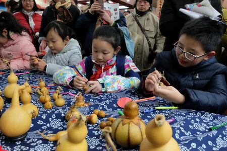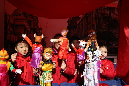 外场主题亲子嘉年华活动则充分整合少年宫、学校、社会的优质资源,分为“传承匠心?一校一品”展示活动,“浓情蜜意·文化迎新”非遗技艺传承体验活动、“浓情腊八·祈福迎春”主题亲子游园会、“民俗·民风·民族情”杨浦区师生书画艺术作品展四个板块,为来自全区的400组家庭带来了近50项民俗、民风体验活动项目。来自市区级的非遗传人带领着我们的非遗小传人队伍展示了各自的独门绝活,糖画、近景魔术、木偶戏……行走其间,好不热闹,孩子们在好吃好玩的氛围中感受传统文化的意趣。与腊八节、春节相结合,大手牵小手,品腊八粥、包汤圆、写春联、剪窗花,其乐融融,不亦乐乎!一楼的书画长廊上,杨浦区少年宫书画社师生用手中的画笔记录眼中的民俗民风,抒发心中的民族情。