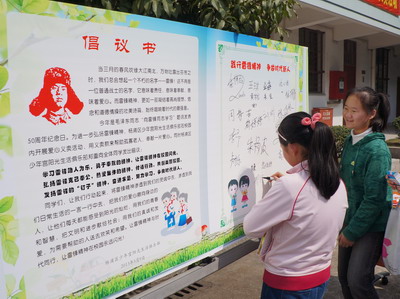 宣传雷锋精神:3月9日,杨浦区少年宫阳光生活俱乐部社团同学,向全体少年宫全体同学发出“践行雷锋精神、争做时代新人”的倡议书。同学们积极响应号召,在倡议书上签下了承诺:学习雷锋助人为乐,勇于奉献的精神,让雷锋精神在校园闪光;弘扬雷锋克己奉公,热爱集体的精神,付诸行动,共创美丽校园;发扬雷锋的“钉子”精神,奋进求是,努力学习,争做时代新人。