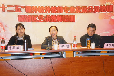 3月12日下午,上海市“十二五”课外、校外教师专业发展杨浦区艺术教师全员培训开班典礼在杨浦区教师进修学院拉开帷幕。杨浦区教育局副局长冯芸、上海市科技艺术教育中心师训研究部副主任汪旦琦、杨浦区艺教委副主任、杨浦区少年宫主任朱茹洁、杨浦区教师进修学院师训部主任庞维成、杨浦区各中小学艺术总辅导员、少年宫教师共计130余人出席了开班典礼及第一次讲座。