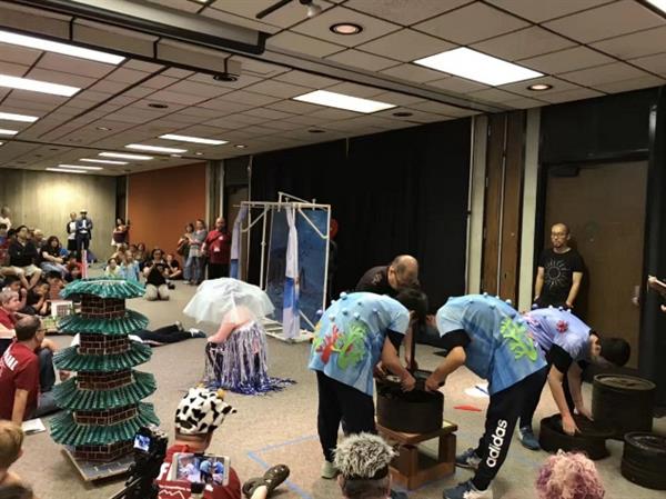 ? ? ?南苑中学参赛队对于这次比赛中的长期题,多次调整比赛方案,特别是对于表演风格如何贴近项目对审美表现的要求,大家做了大量的设计和调整,比赛中队员们都齐心协力、不慌不忙,完成了题目要求的鲨鱼“喂食”任务和表演等,最后学生们制作的不足15克的轻木结构承受了20片杠铃片400公斤的重量。