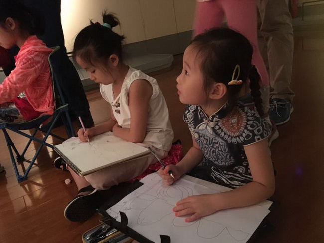 无论是室外亦或是室内的写生参观,少儿书画社团的孩子们在老师的教导下,已经自然而然地养成遵守场馆的秩序,多次的外出写生让他们积累了丰富的经验,虽然参观观众很多,但丝毫没有影响到他们认真作画的心情,依旧铺开画纸认真作画,个个像模像样,超有架势,他们对艺术大师的膜拜达到了一种忘我的境界。