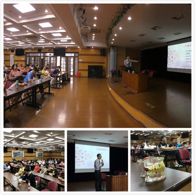 9月8日,“开学第一课”——“爱牙护齿”公益科普讲座在活动中心多功能厅进行。来自上海市第九人民医院的赵宁教授为现场的孩子和家长讲解了?;ぱ莱莺脱莱菡闹?。