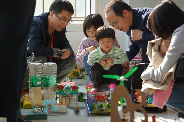活动共有“竖立的伞骨架”、“低空飞行”、“纸绳拖重”、“智能服装秀”、我心目中的“智能社区”创意大比拼、“创意装置打靶”、“爱心小发明”、“纸车跑圈”8个赛区的竞赛,来自全区六十多所中小学、幼儿园的亲子家庭2千余人参加了比赛。