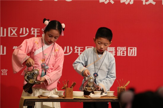 当俄罗斯喀山“珍珠”青少年民间舞蹈团师生们到达少年宫时,少年宫的孩子热情地为外国朋友们送上了中国民族风格的小礼物,并为来宾烹茶,体现了“客来敬茶”这一中国人传统的民俗习惯。随后,宝山区少年宫沙林芬主任致欢迎词,表达了少年宫每一位师生的浓浓情谊。