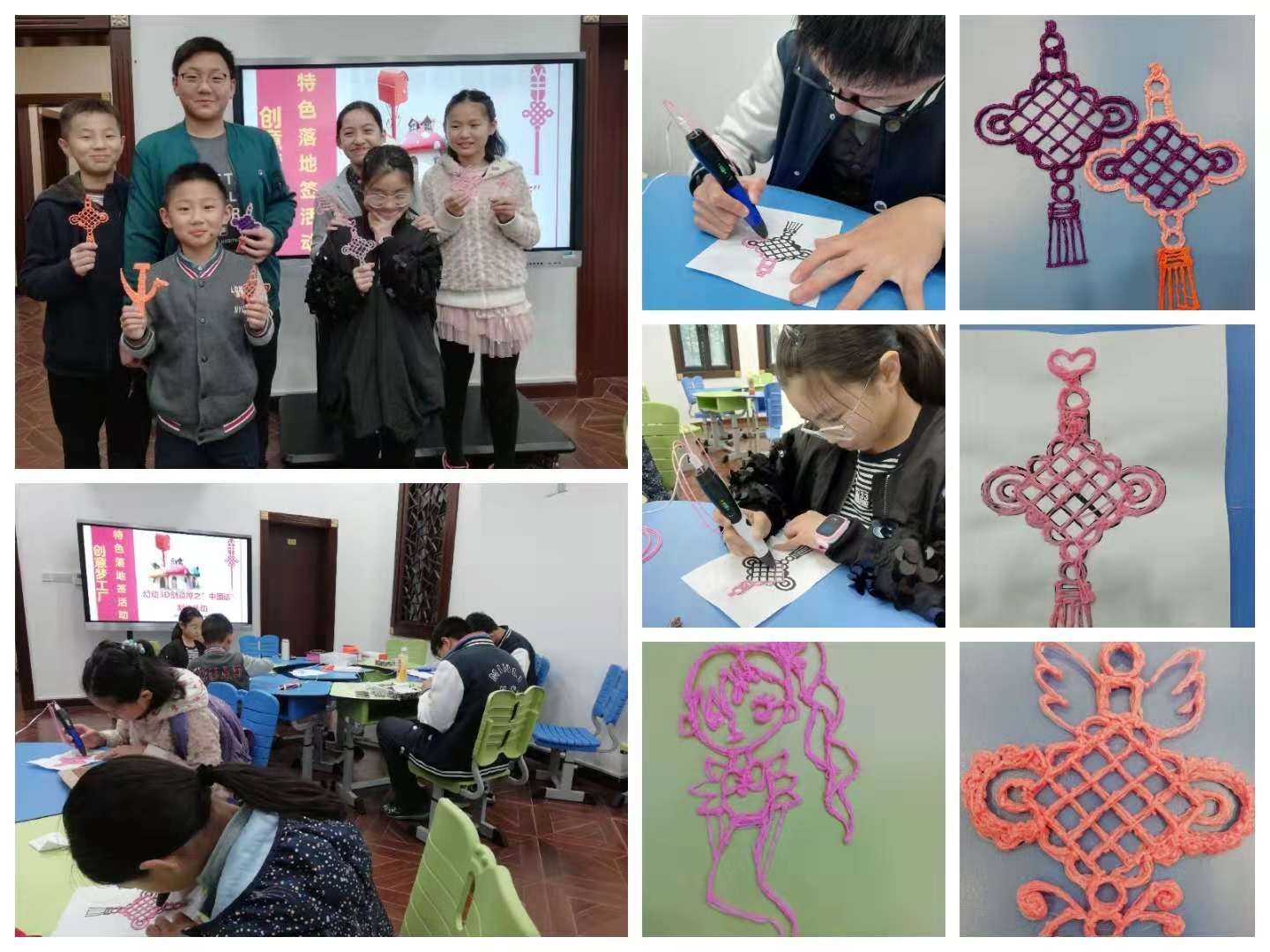 中国结是中国传统的手工编织工艺品,不但造型优美、色彩多样,而且寓意表示热烈浓郁的美好祝福,是赞颂及传达衷心至诚的祈求和心愿。本次活动属于创意梦工厂“幻动3D创意屋”3D打印笔系列活动,由梦工厂的老师们共同精心设计,将中国传统工艺品中国结与现代科技3D打印笔相结合。