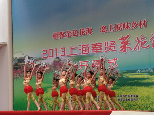 莫道春寒催人行,三月何处不流金。3月29日,一年一度的上海奉贤菜花节在庄行金色田野上拉开帷幕。上午10点,奉贤区青少年活动中心学生艺术团(舞蹈团、民乐团)的少儿滚灯节目《灯舞新韵》受邀在菜花节开幕式舞台上演出。尽管春寒逼人,但小演员们个个笑意盎然,她们用最好的状态表达了对家乡的赞美之情,她们精彩的演绎赢得了观众的阵阵掌声。