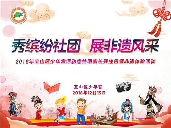今天的少年宫喜气洋洋,“秀缤纷社团 展非遗风采”2018年宝山区少年宫活动类社团家长开放日暨非遗体验活动在小剧场拉开帷幕,近300名学员及家长参加了开放日活动。