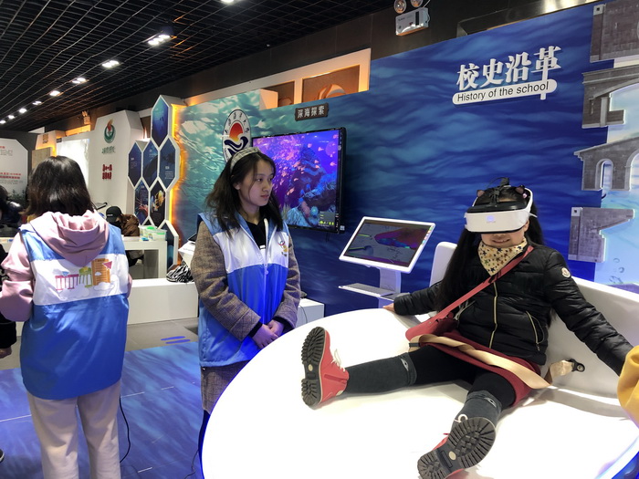 同学们被孙老师精彩的讲座吸引到不愿离去,他们不仅仅对海洋生物有了更多的认识和兴趣,更表示这是一个非常有意义和值得进一步深入研究和学习的课题。讲座结束后,大家来到百年大学主题实践馆的上海海洋大学的展位,通过VR,继续进行神秘的海洋探索。